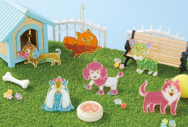今回は、ペットとしても人気の高い『いぬ』と『ねこ』が登場しました。従来品同様、グラスデコ6カラー(本)と絵柄6コ(種)のプレートが入っており、色の組み合わせ次第でオリジナルの作品が作れます。さらに、もっと作りたいに対応し、付属プレートだけの「グラスデコ オーナメントプレートパック」も同時発売。親子で手作りを楽しむ他、ギフトにも最適です。