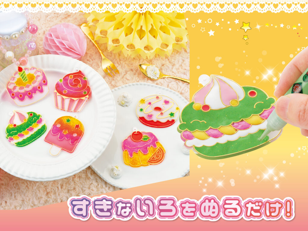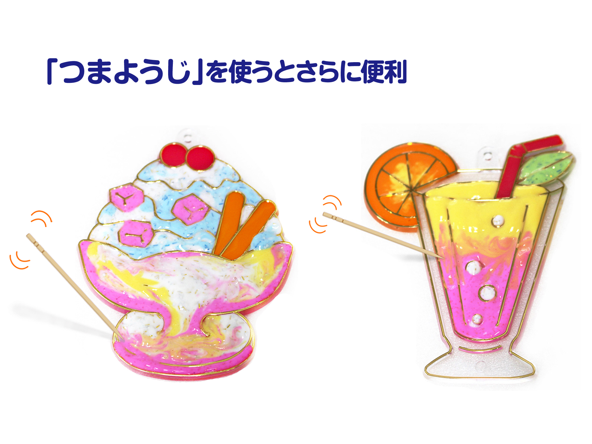 付属の透明プレートにお好きな色のグラスデコを塗って乾かすだけでカラフルなオーナメントが作れます。