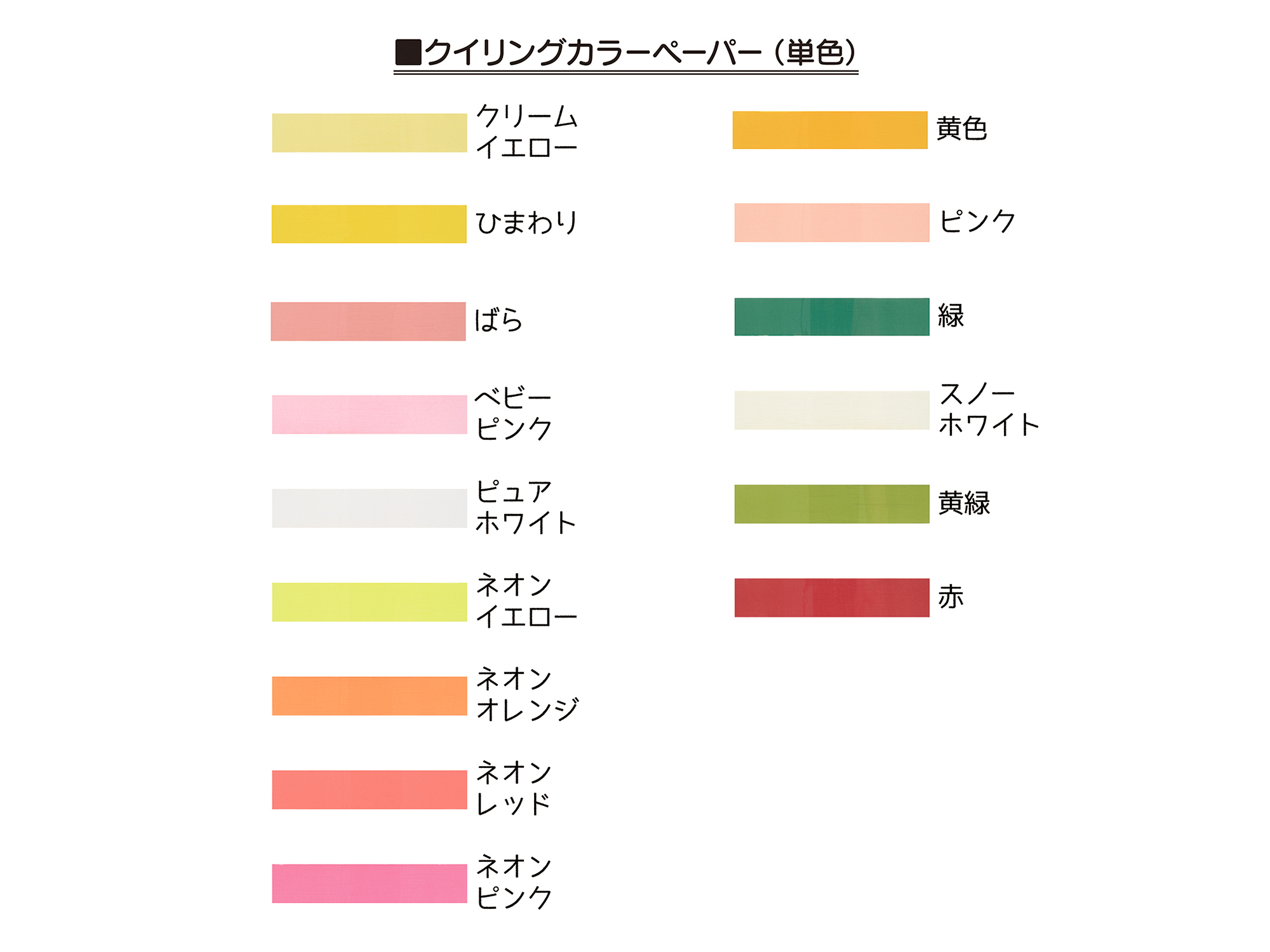 作品の幅がさらに広がる、ネオンカラーも入った単色カラーペーパーラインナップ。6mm幅は、バラなど立体感のある花モチーフに向いています。